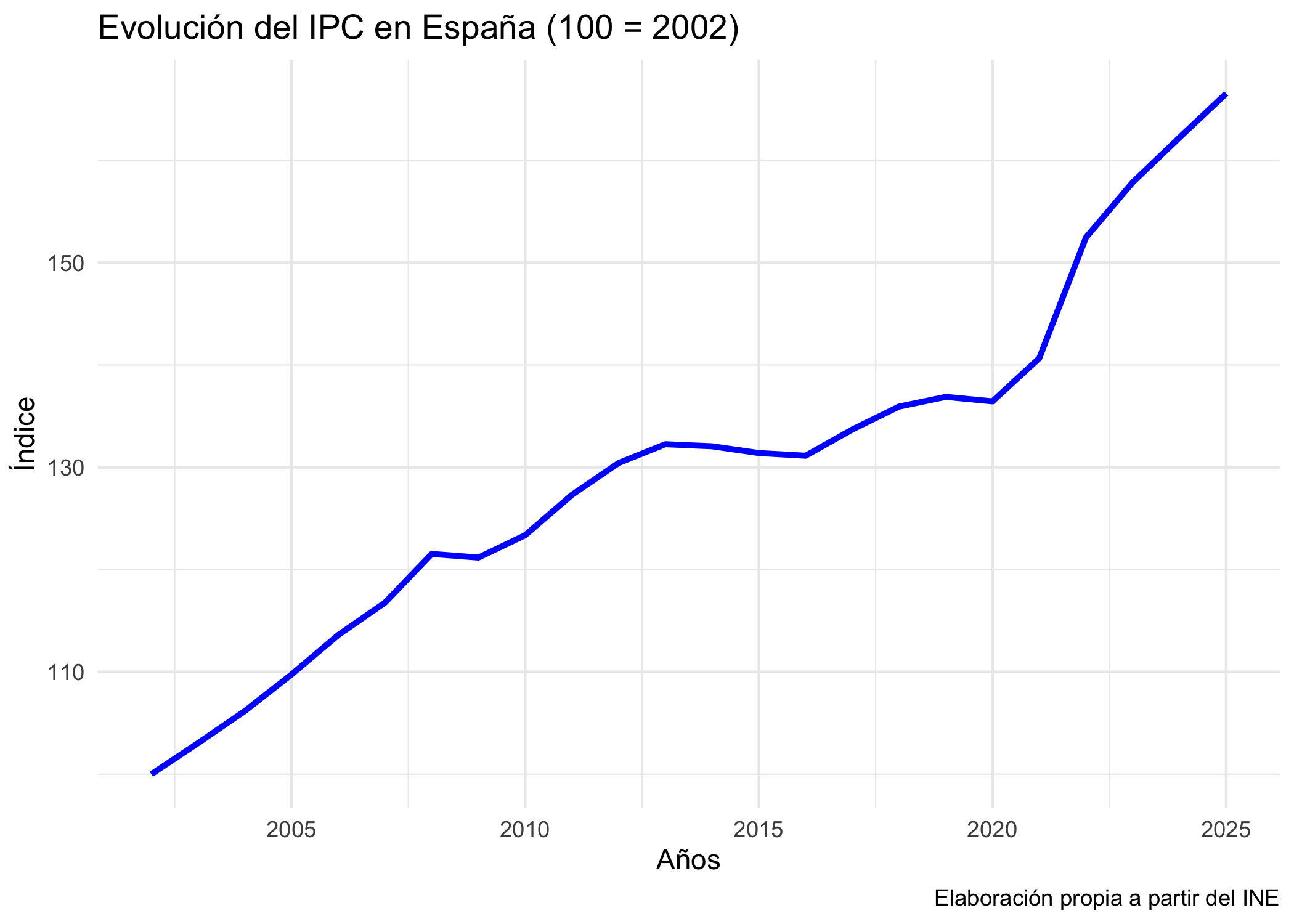#Calculamos los números índices para cada año, desde el 2002 hasta el 2025